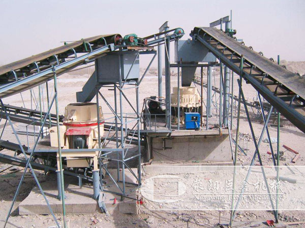 2、圓錐破碎機(jī)+破碎機(jī)+振動篩+皮帶輸送機(jī)